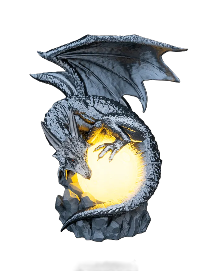 lámpara lunar envuelta por un dragón, el toque épico para tu setup gamer o escritorio.