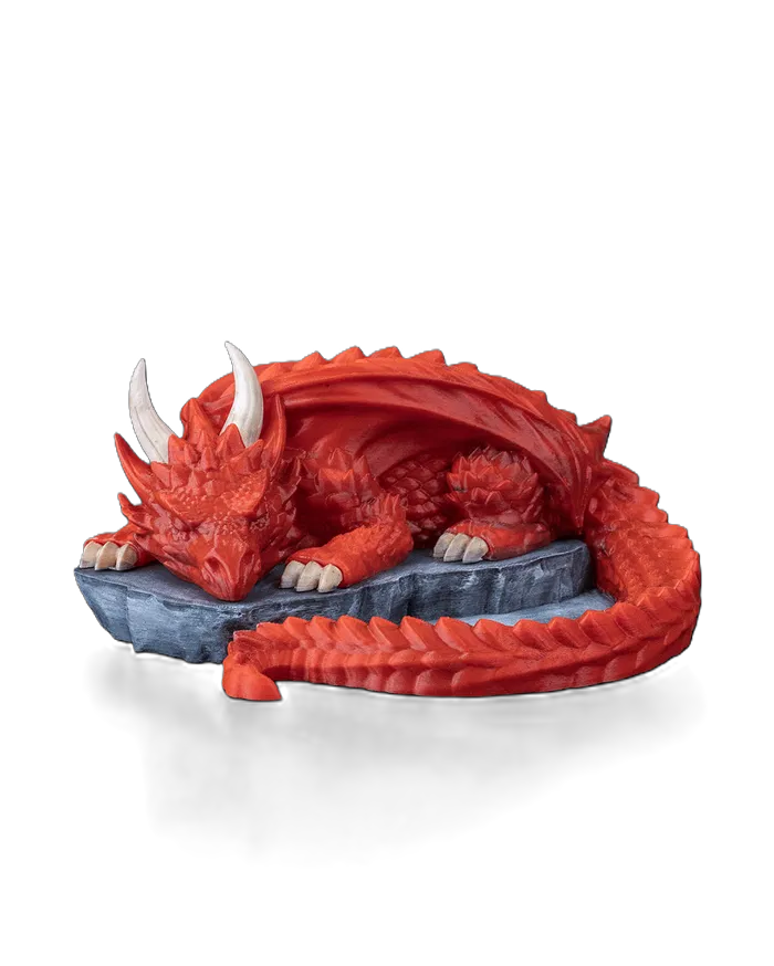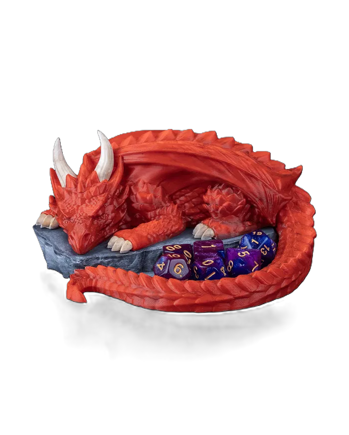 Un dragón perezoso duerme sobre su roca… pero su cola no descansa: sostiene tus dados como tesoro.✨💎🗝️