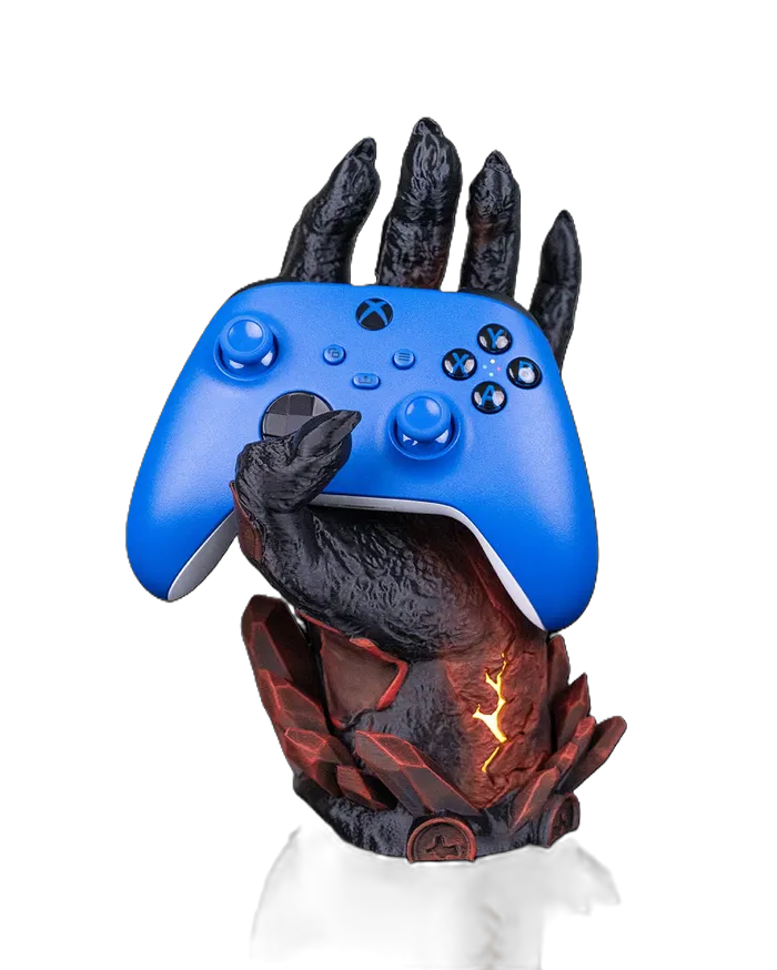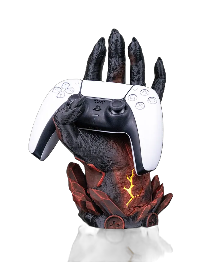 Una mano oscura emerge desde una fractura entre mundos, extendiéndose desde las profundidades del inframundo para sostener tu control con firmeza sobrenatural.🖤⚡