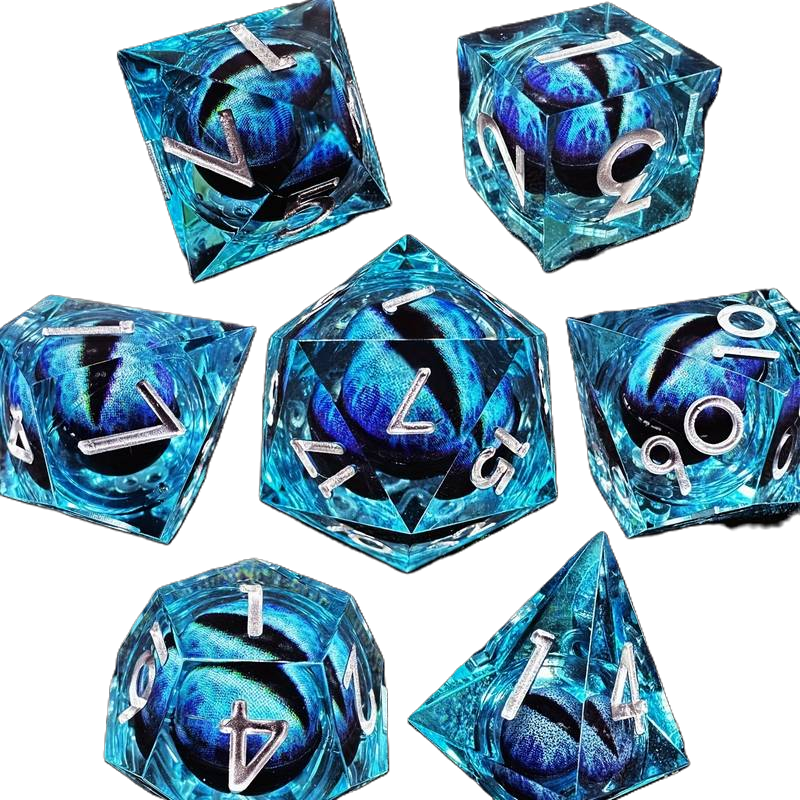 Set de dados con diseño de ojos de dragón, perfectos para dar un toque épico y misterioso a tus partidas.